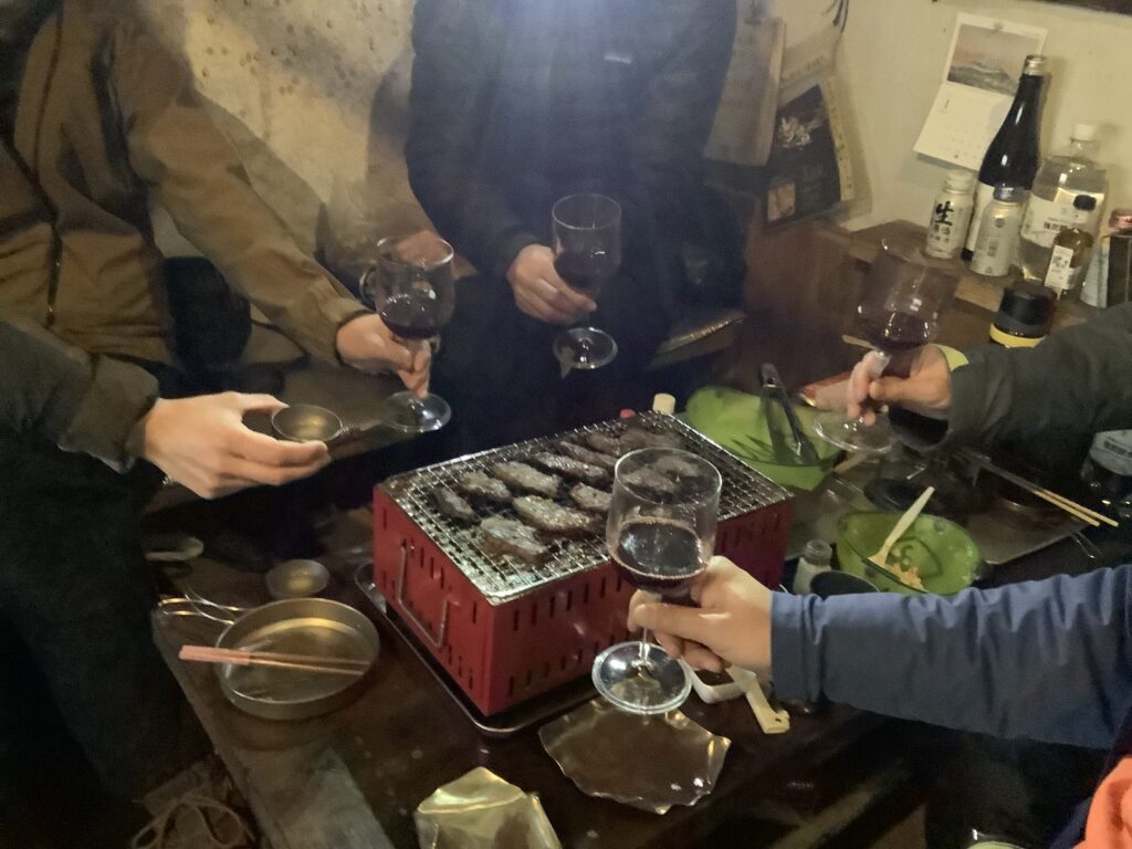 予約された方には、小屋番が薪ストーブで炭をおこして着火した七輪をご用意しますので、皆さんが持ってきた食材をなんでも焼いちゃってください!という厳冬期限定の企画です。